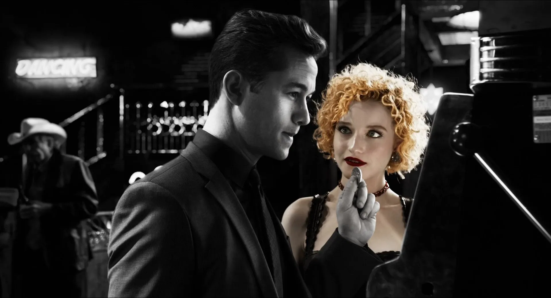 Cast: Mickey Rourke as Marv, Jessica Alba as Nancy, Bruce Willis as Hartigan, Josh Brolin as Dwight, Joseph Gordon-Levitt as Johnny, Eva Green as Ava, Rosario Dawson as Gail, Powers Boothe as Senator Roark, Dennis Haysbert as Manute, Ray Liotta as Joey, Stacy Keach as Wallenquist, Jaime King as Goldie / Wendy, Christopher Lloyd as Kroenig, Jamie Chung as Miho, Jeremy Piven as Bob, Christopher Meloni as Mort, Juno Temple as Sally, Marton Csokas as Damien Lord, Jude Ciccolella as Lt. Liebowitz, Julia Garner as Marcie, Lady Gaga as Bertha, Alexa PenaVega as Gilda, Patricia Vonne as Dallas, Bart Fletcher as Flint, Alejandro Rose-Garcia as Buzz, Samuel Davis as Frat Boy #3, Mike Davis as Frat Boy #4, Kimberly Cox as Lillian, Alcides Dias as Tony, Vincent Fuentes as Abdul, Billy Blair as Louie, Rob Franco as Luigi, Daylon Walton as Gordo, Eloise DeJoria as Joey's Wife, Bob Schreck as Mulgrew, Lawrence Varnado as Boogaard, Jimmy Gonzales as Jacoby, Tommy Townsend as Wino Old Timer, Robert Lott as Cowboy, Gregory Kelly as Godzilla, Patrick Sane as Gorgo, Greg Ingram as Mothra, Will Beinbrink as Lawyer, Dimitrius Pulido as Maitre d', John Wirt as Heavy, Emmy Robbin as Flamethower, Luis Albert Acevedo Jr. as Security Guard #1, Christian Bowman as The Man, Johnny Reno as Weevil, Callie Hernandez as Thelma, Kea Ho as Old Town Girl (uncredited), Robert Rodriguez as Sam's Friend (uncredited)